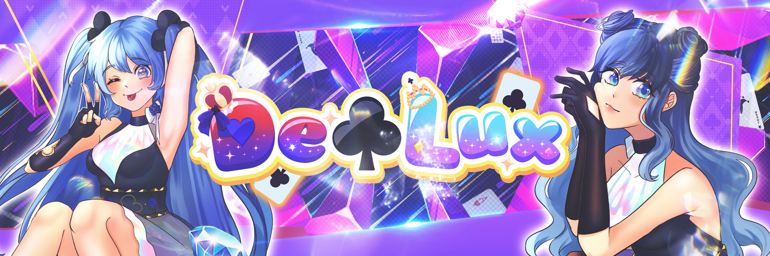 2 girls are brought together in a world full of mirrors each in different dimensions; one above and the other below. Together they must work to defeat the lords of the Casino to protect both of theirs reality. De♧Lux is a virtual idol duo comprised of Irene & Caspy. De♧Lux’s main focus is to create original music with a mix of J-POP & K-POP elements, along with lore infused storylines.